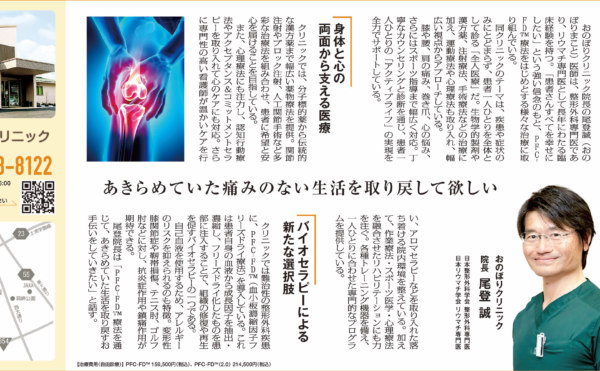 地域の皆様に気軽に訪れて頂ける親しみあるクリニックを目指し、膝痛、腰痛、肩痛、巻き爪の治療、心の悩み・健康相談、スポーツ技術の指導を通じて地域社会への貢献を目指します。